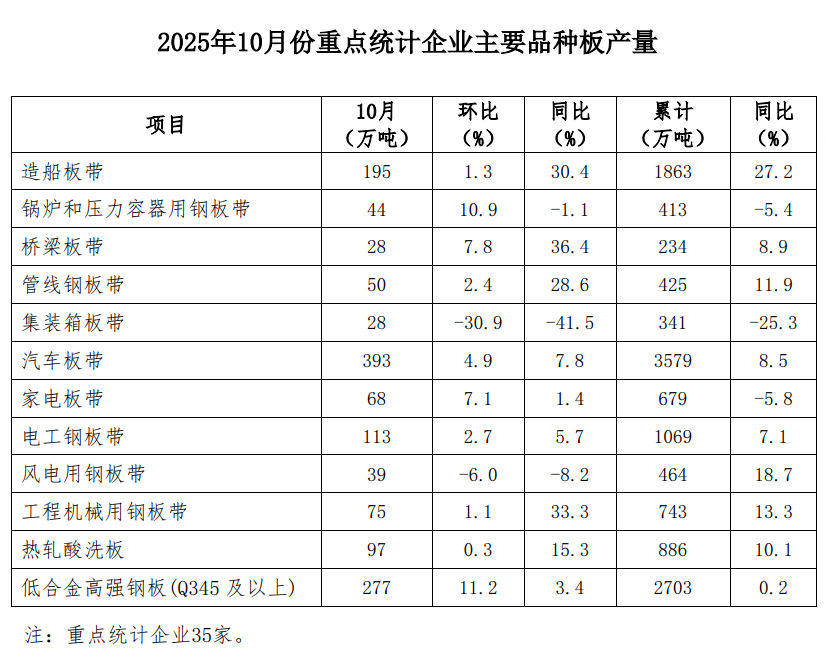 2025年10月重點統(tǒng)計企業(yè)板帶材生產(chǎn)情況