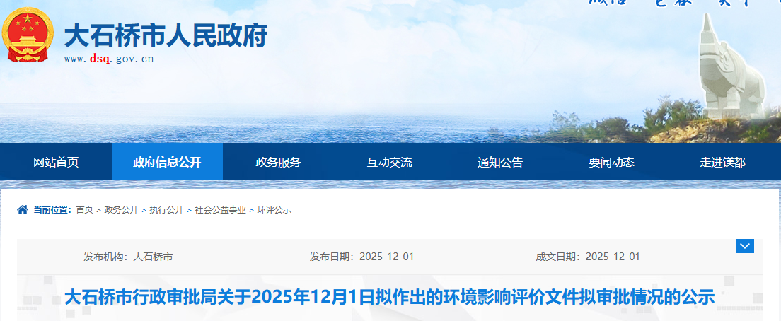 根據(jù)建設(shè)項(xiàng)目環(huán)境影響評(píng)價(jià)審批程序的有關(guān)規(guī)定,經(jīng)審查,我局?jǐn)M對(duì)1個(gè)項(xiàng)目環(huán)境影響評(píng)價(jià)文件作出審批意見。為保證此次審查工作的嚴(yán)肅性和公正性,現(xiàn)將擬作出審批意見的環(huán)境影響評(píng)價(jià)文件基本情況予以公示,公示期為2025年12月1日-2025年12月5日(5個(gè)工作日)。