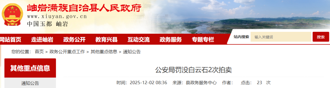 受委托,岫巖滿族自治縣產(chǎn)權(quán)交易中心有限責(zé)任公司(鞍山市金鳴拍賣有限公司)定于2025年12月9日上午10時(shí)在中拍平臺(tái)依法對(duì)下列標(biāo)的進(jìn)行第二次拍賣: